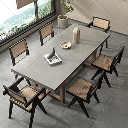 - لون تقليد الأسمنت النهائي: يحاكي سطح الطاولة مظهر الأسمنت، مما يضيف لمسة عصرية إلى تصميم الخشب الكلاسيكي.
