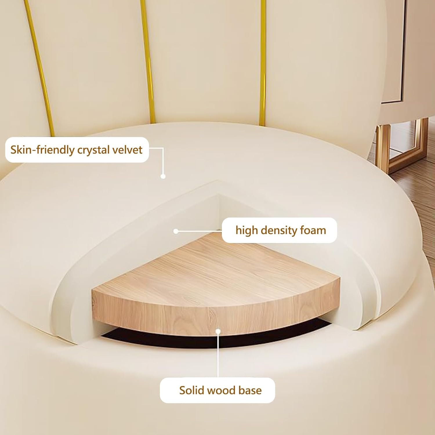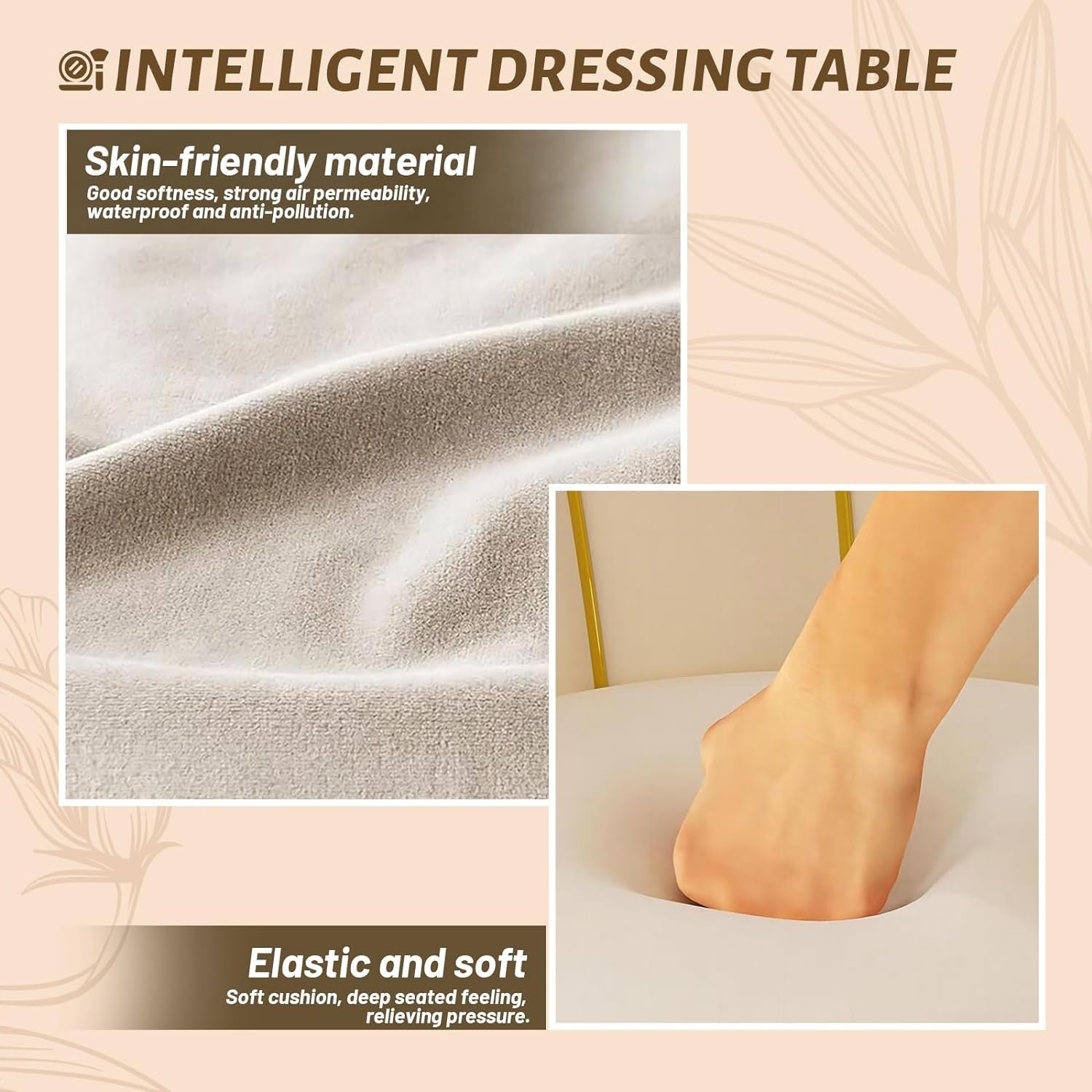 🌳 المواد المفضلةمصنوع من خشب صلب صديق للبيئة، يتميز هذا الكرسي المخصص لوضع المكياج بوسادة محشوة بإسفنج عالي الكثافة لراحة مثالية. يتميز بتنجيد مخملي ناعم وجيد التهوية، بينما تضمن العجلات متعددة الاستخدامات في الأسفل سهولة الحركة دون إتلاف أرضياتك.