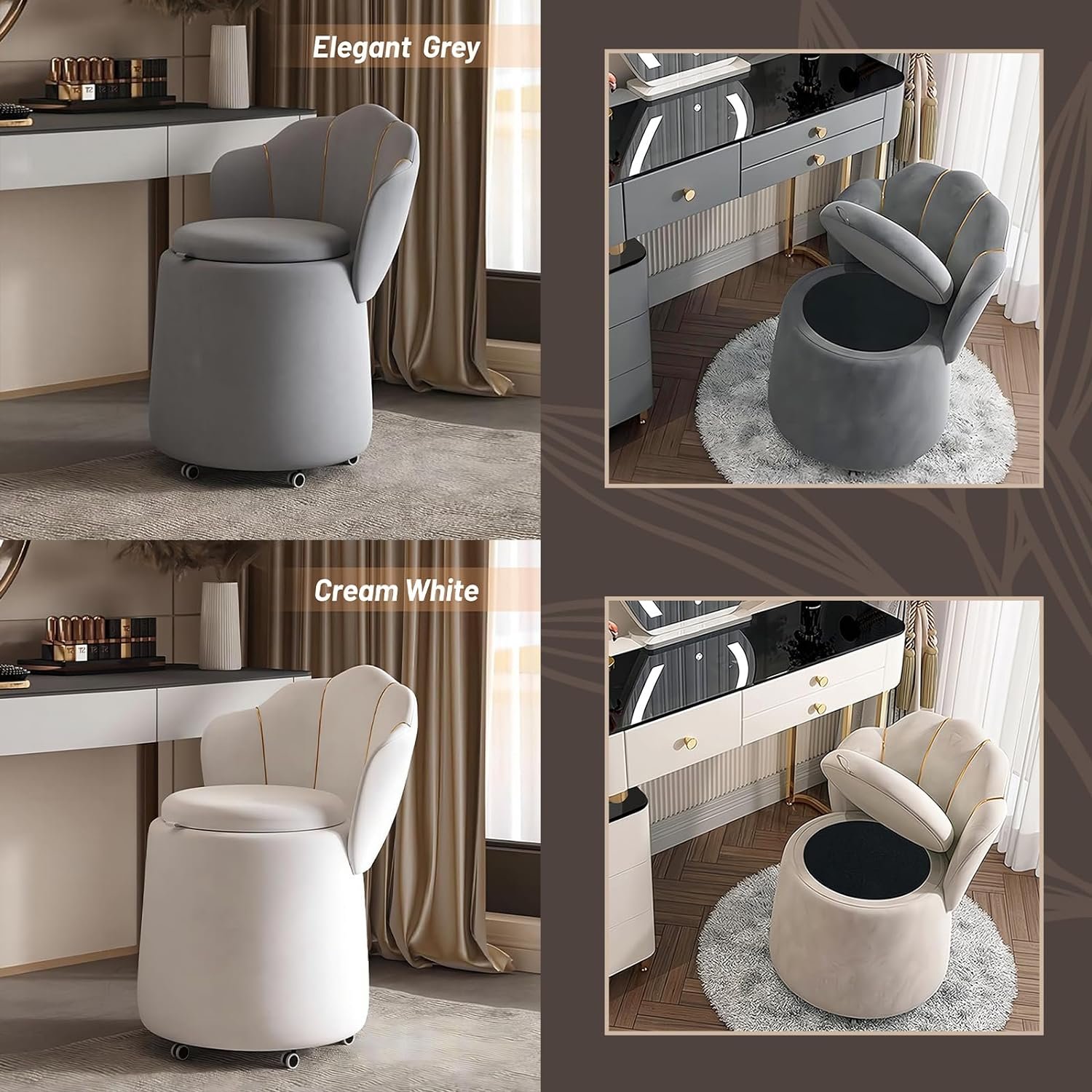 19 مراجعة لـ Begonia Velvet Accent Vanity Chair with Storage & Wheels