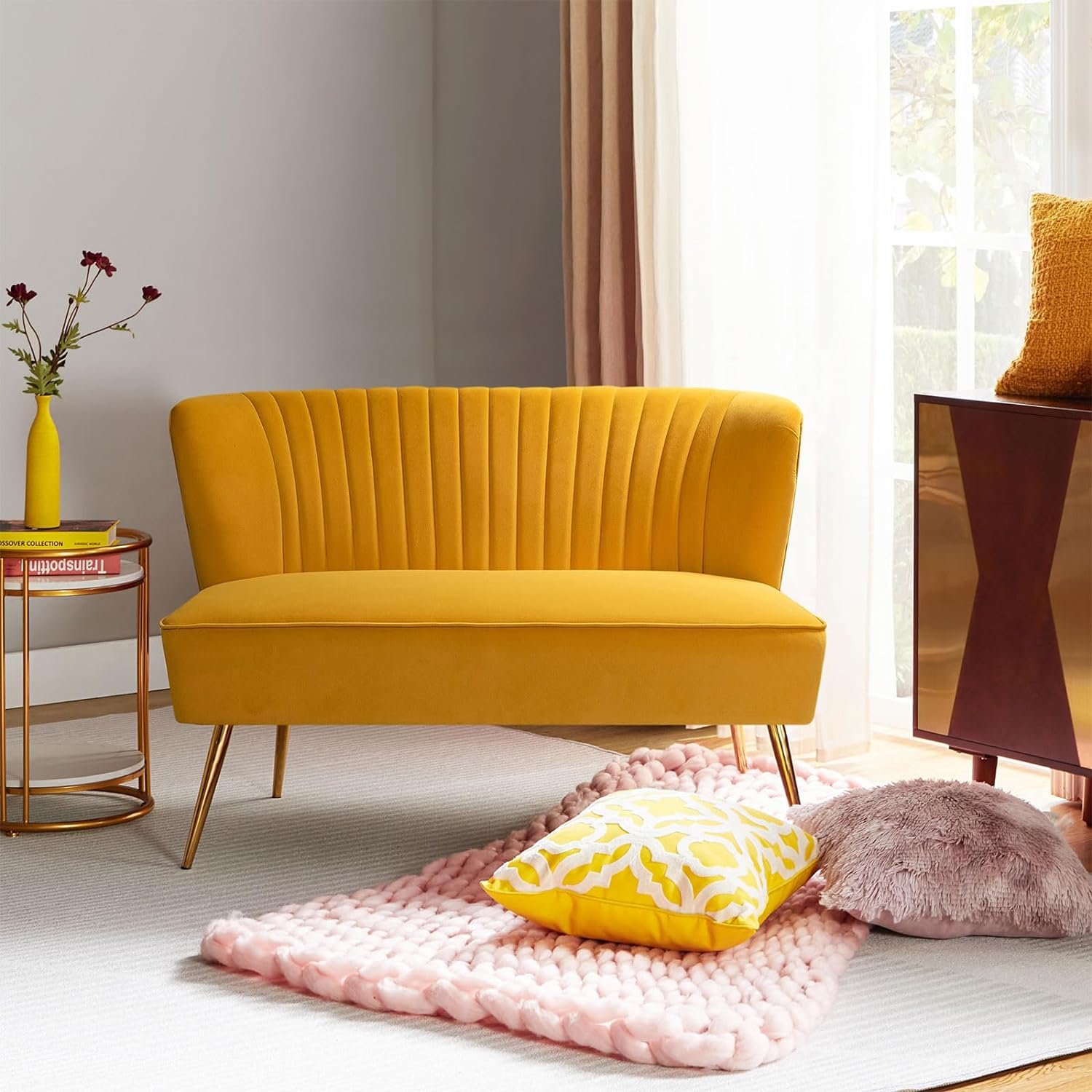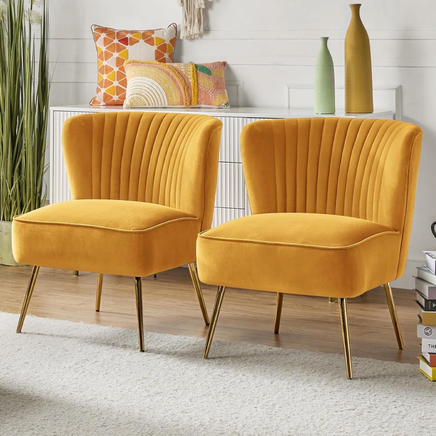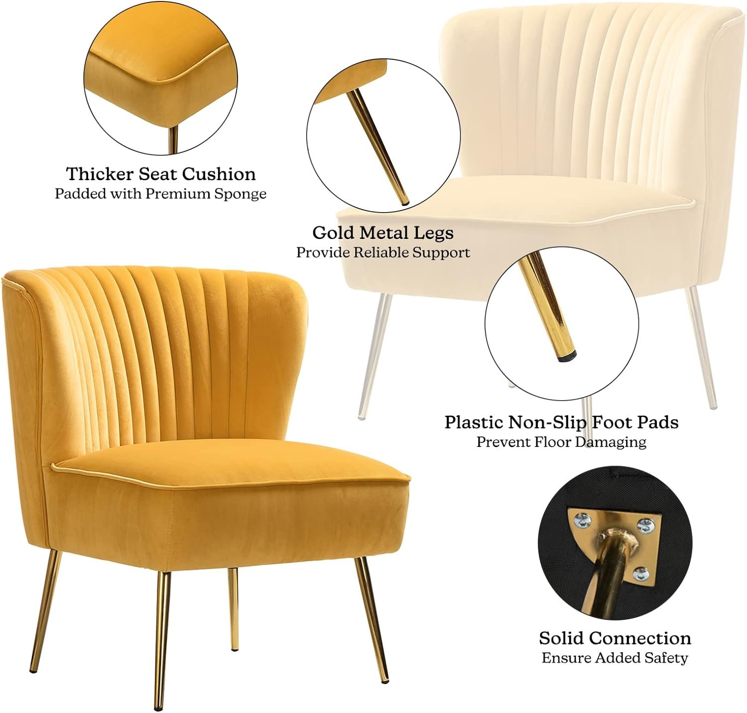 29 مراجعة لـ HULALA HOME Mustard Velvet Accent Chair with Gold Legs
