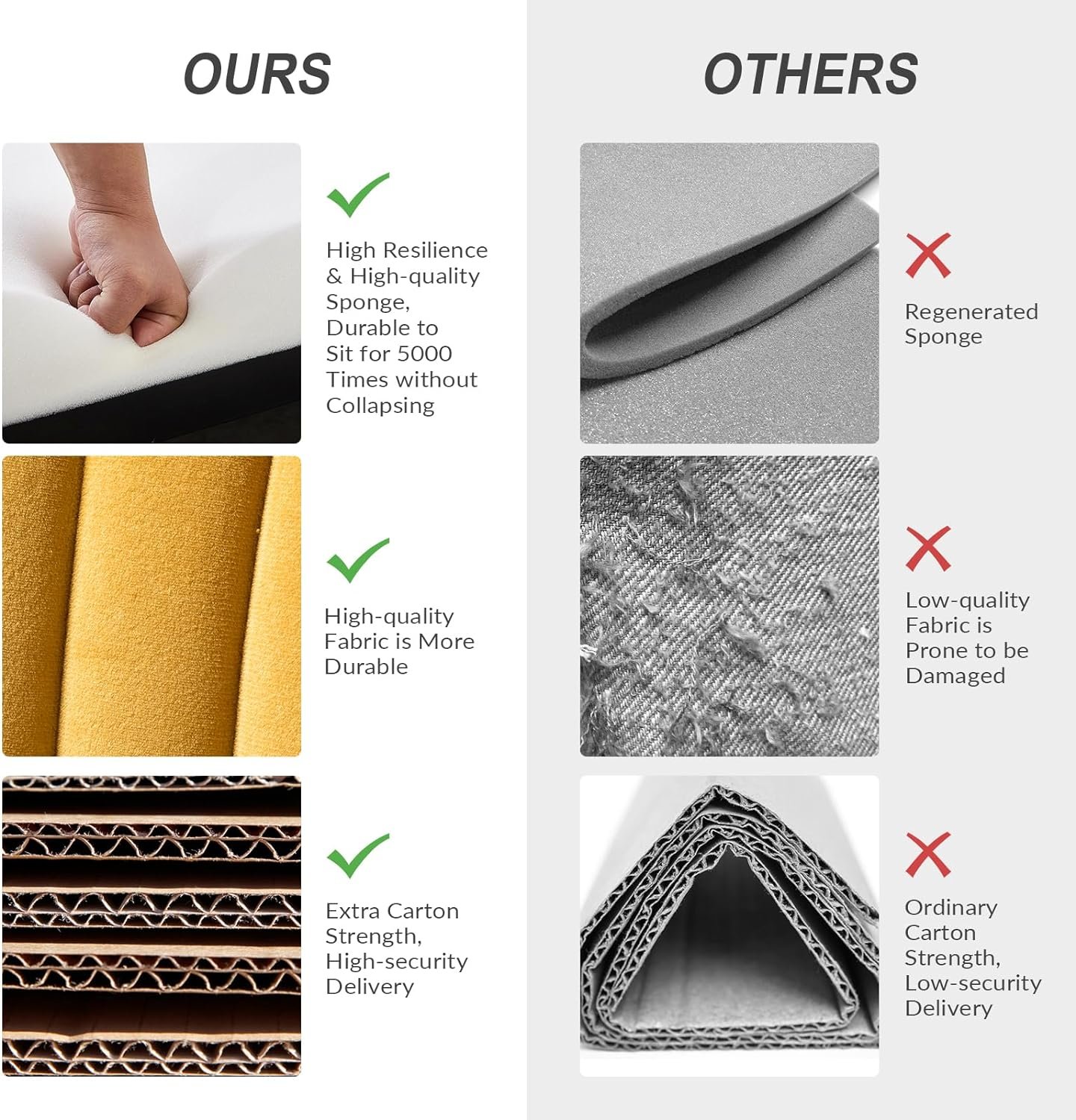 • حشوة إسفنجية عالية الكثافة وإطار من الخشب الصلب للراحة والدعم 🪵