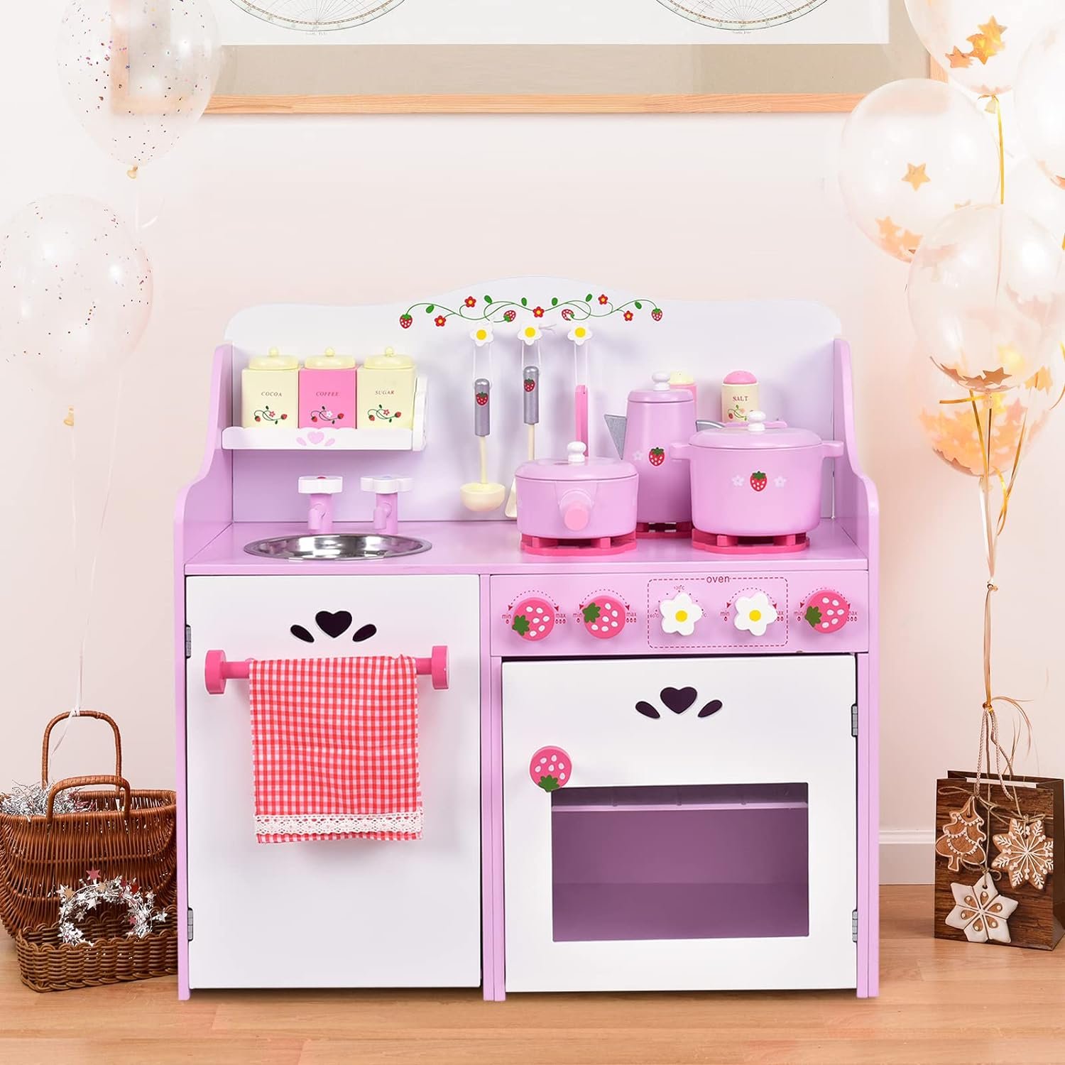 مجموعة ألعاب مطبخ الأطفال من كوستزون - بتصميم الفراولة الوردية