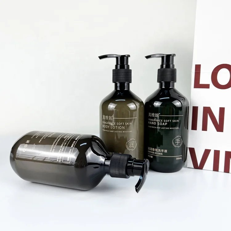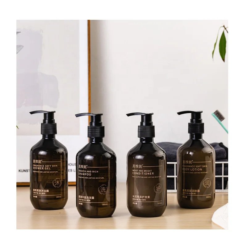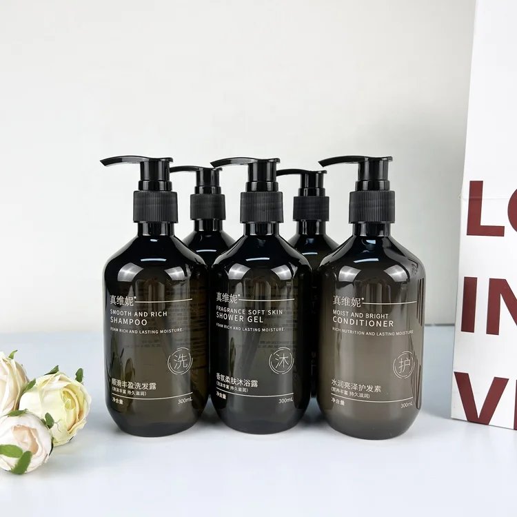 مجموعة مستحضرات الاستحمام الفندقية برائحة الشاي طقم شامبو جل الاستحمام مجموعة شامبو بشعار العميل PVC طباعة شعار العميل بالجملة 300 مل شامبو وبلسم أبيض