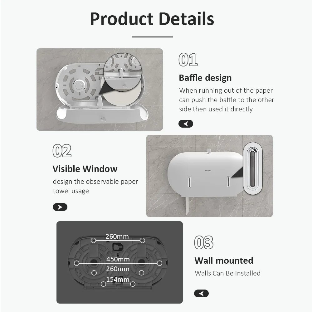 موزع مناديل ورقية مثبتة على الحائط SVAVO موزع مناديل ورقية شفافة مزدوجة جامبو لدورات المياه العامة التجارية
