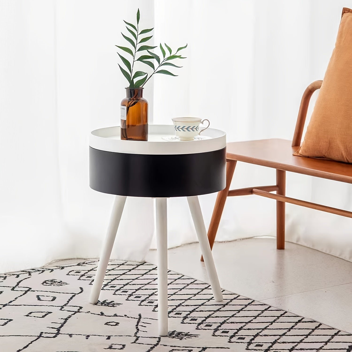 طاولة جانبية خشبية عصرية - حل تخزين موفر للمساحة