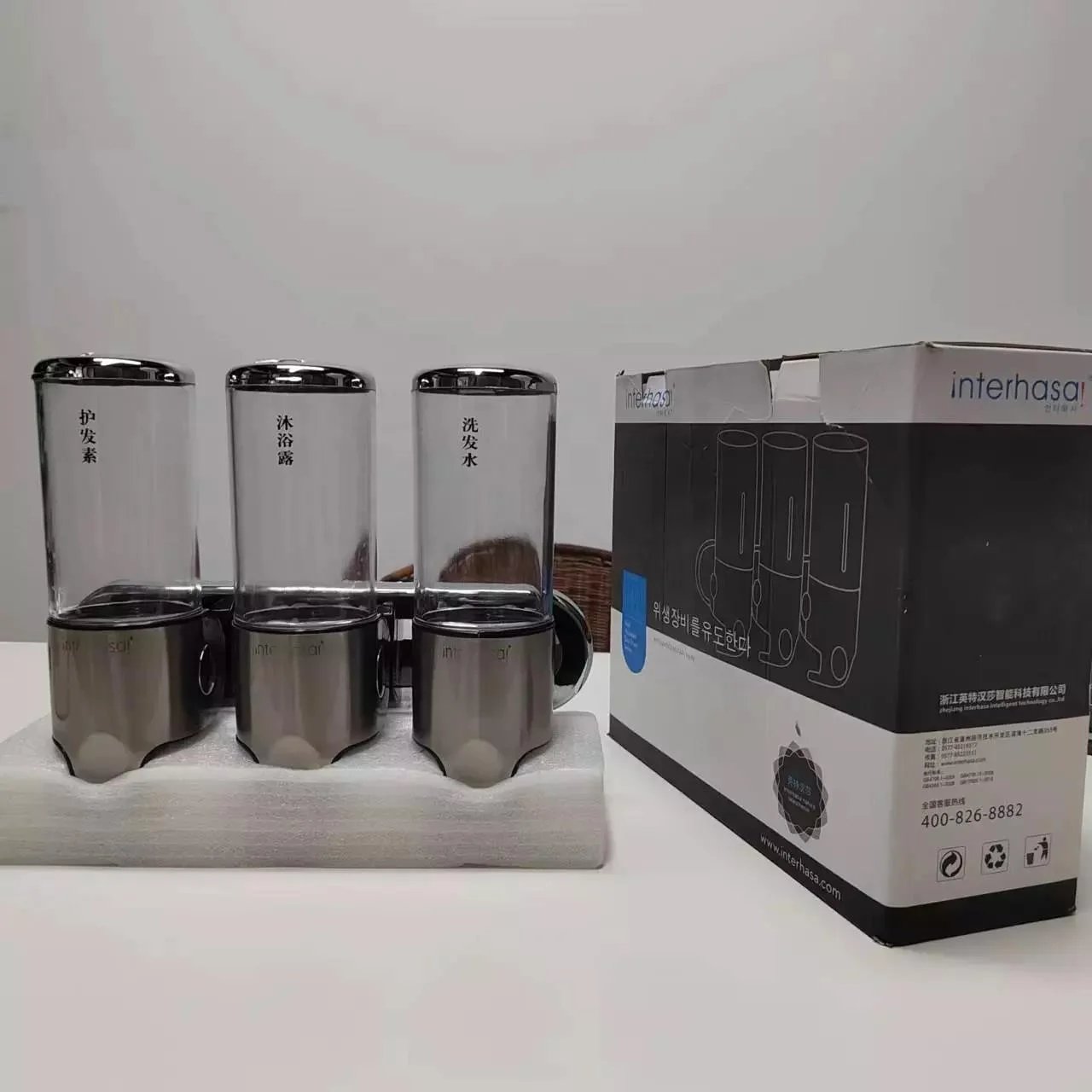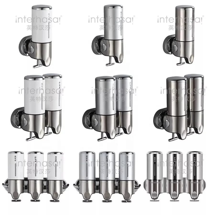 - اسم المنتج : موزع صابون جل استحمام ثلاثي من الفولاذ المقاوم للصدأ مثبت على الحائط مع شامبو