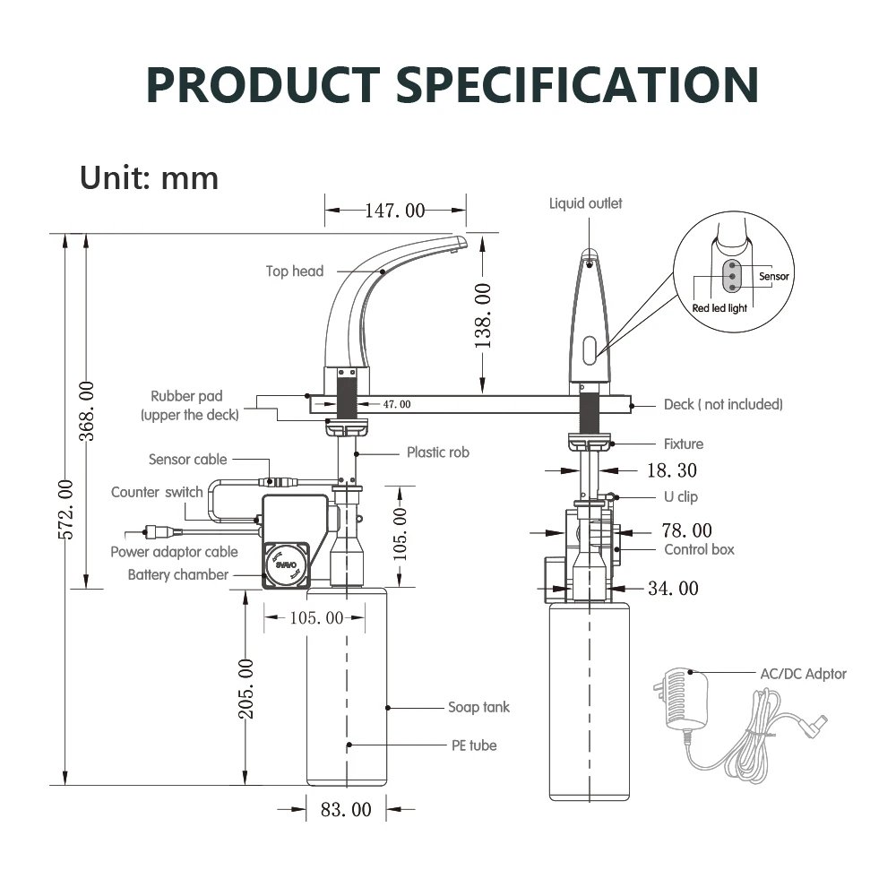 - نوع موزع الصابون السائل : موزع الصابون الأوتوماتيكي