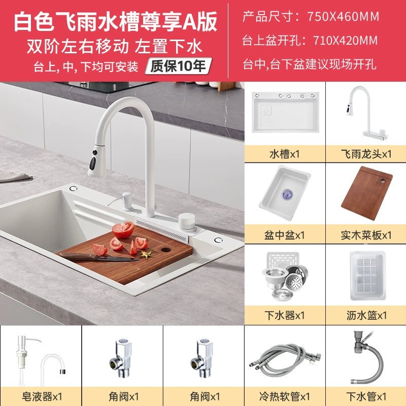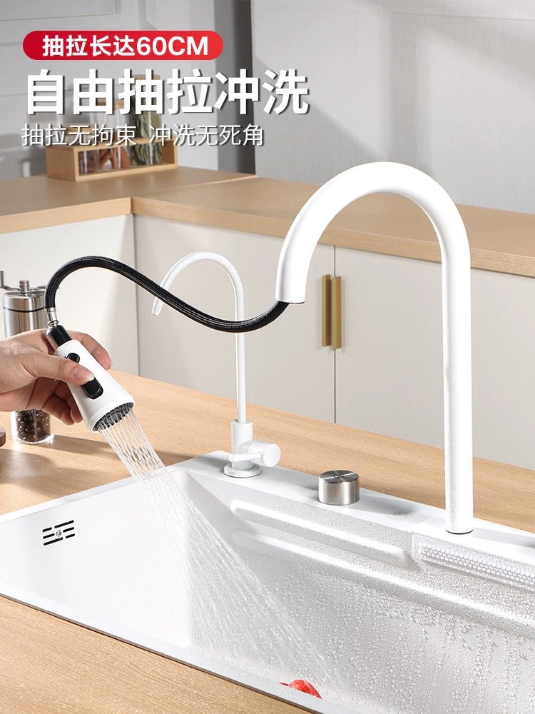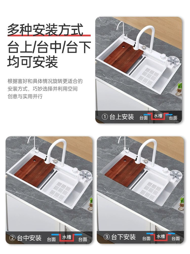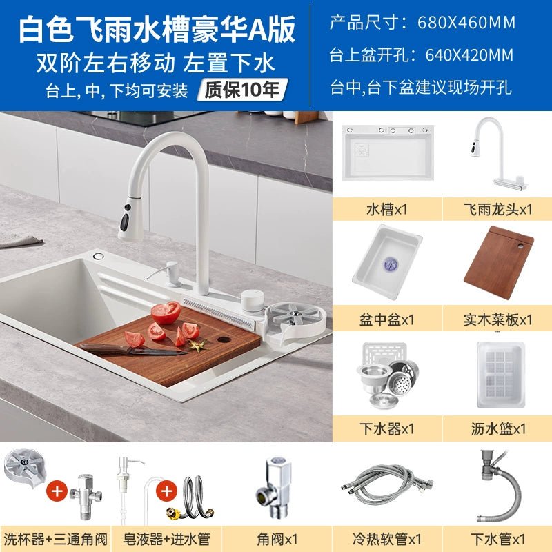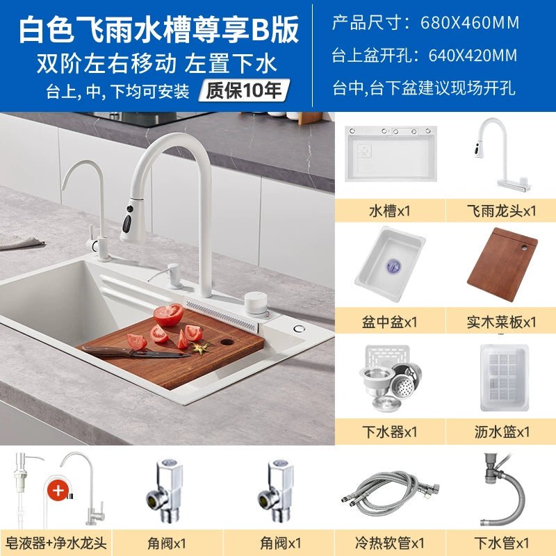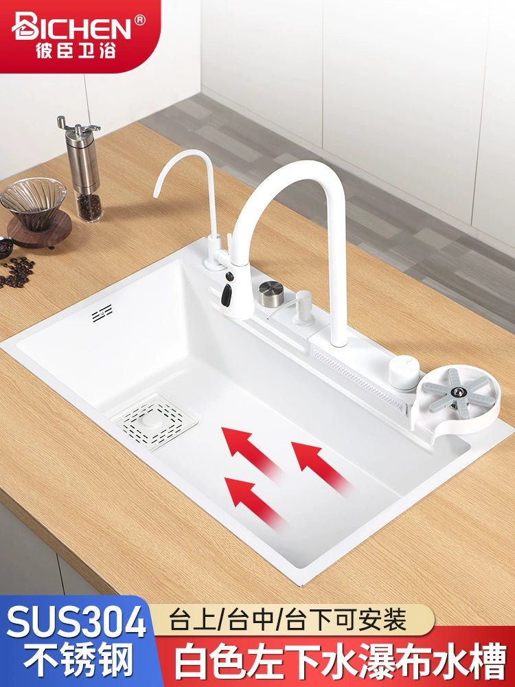 حوض مطبخ من الفولاذ المقاوم للصدأ على شكل شلال أبيض