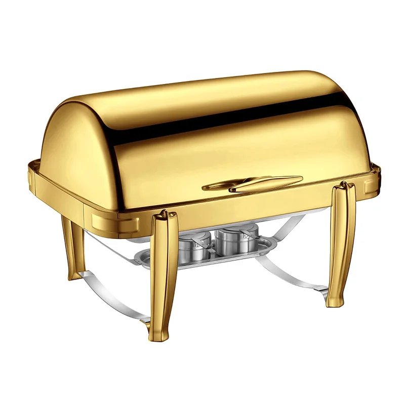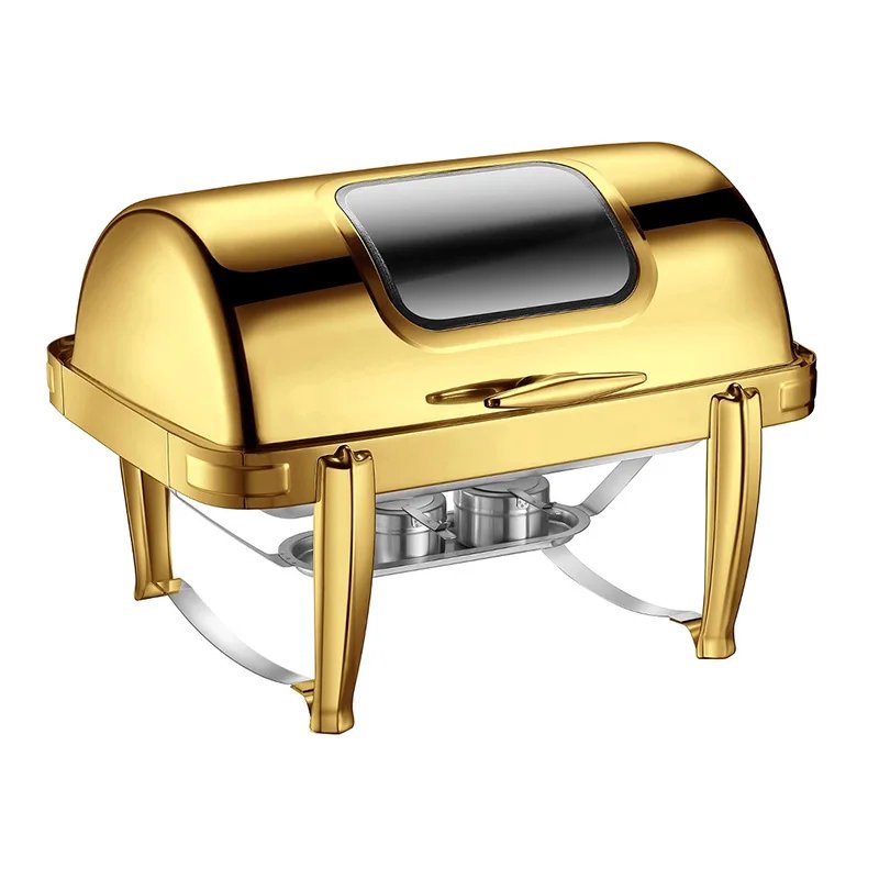 20 مراجعة لـ Luxury Buffet Equipment Stainless Steel Gold Glass Chafing Dish Roll Top Hydraulic Chaffing Dishes Set Food Warmer for Catering