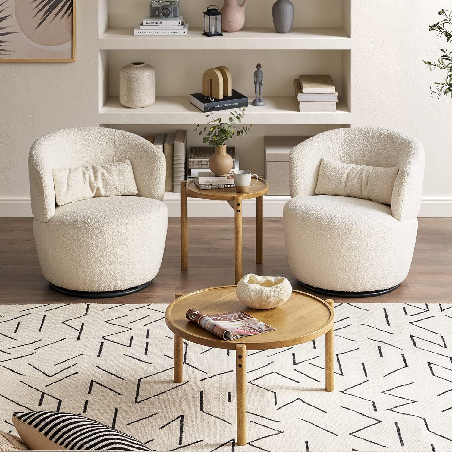 طاولات قهوة متداخلة دائرية من موبيو ديلان، قطعتان - تصميم بوهو ريفي