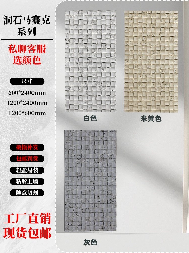 Consult customer service for free sample 20*20cm ,Travertine Mosaic-Gray Width 60*120cm/Piece ,Travertine Mosaic-White Width 60*120cm/piece ,Travertine Mosaic-Beige Width 60*120cm/Piece ,Large Travertine Mosaic (1 square meter price) 60*240cm/120*240cm |
