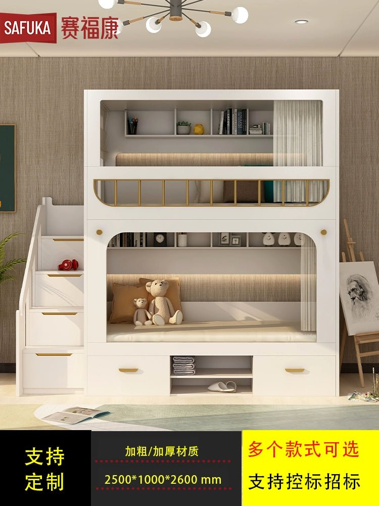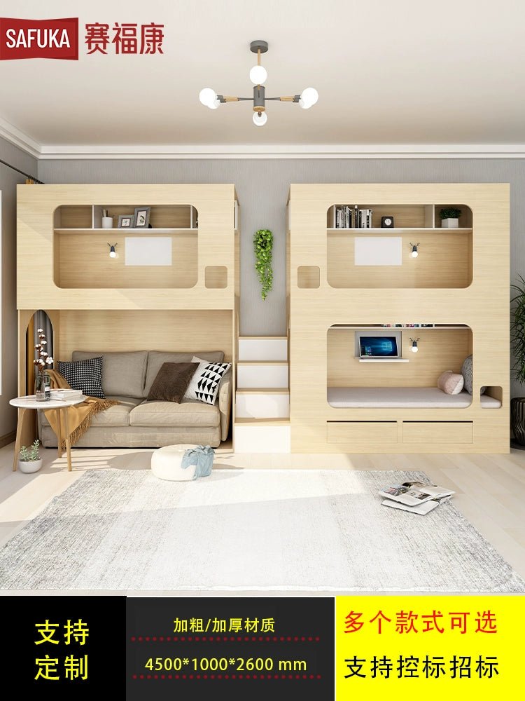 Solid Wood Space Capsule Bunk Bed with Storage