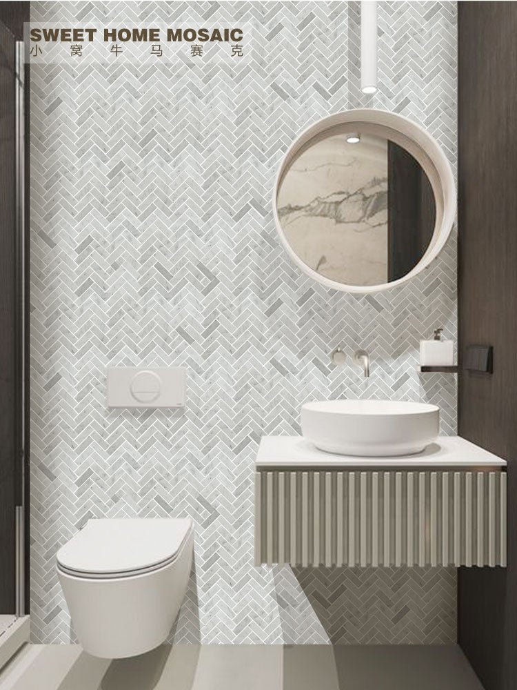 20 مراجعة لـ Herringbone Marble Mosaic Tiles – Non-Slip Design