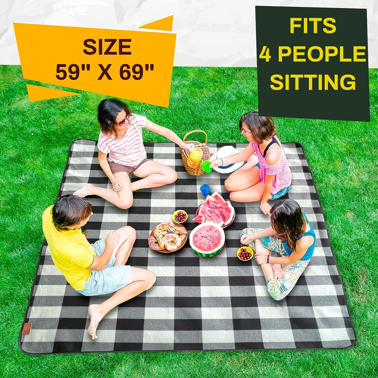 2️⃣ [Large Size] 📏🔝 Measuring at 59″ * 69″, this picnic blanket provides ample space for you and your squad to lounge around in. Room for everyone means more fun and less arguments over who gets to sit where.