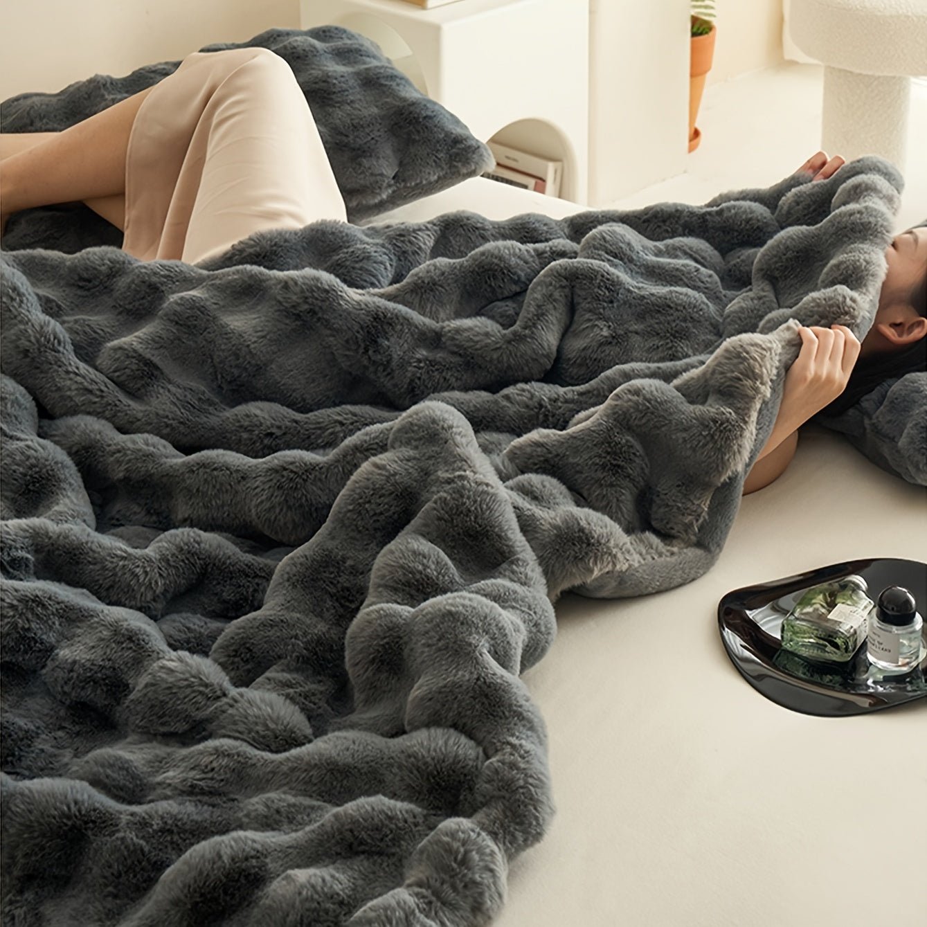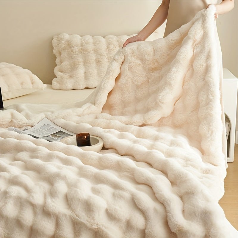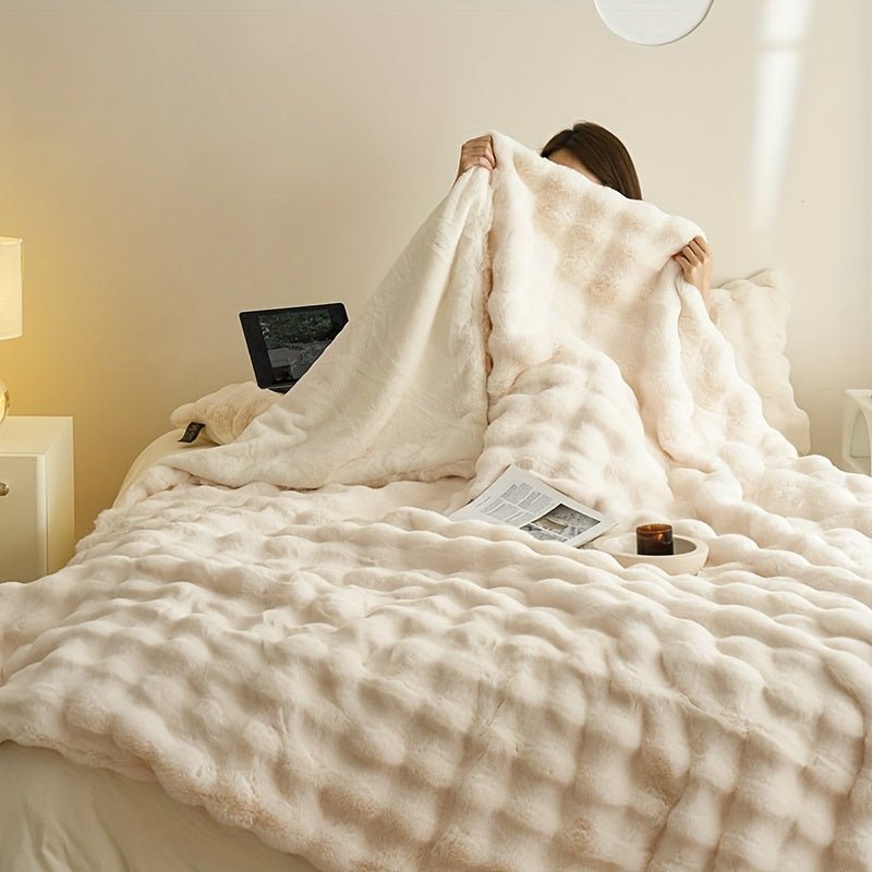 Double-Sided Rabbit Fleece Blanket – Soft & Warm Throw