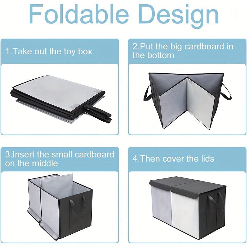 Large Collapsible Toy Storage Box with Double Lids