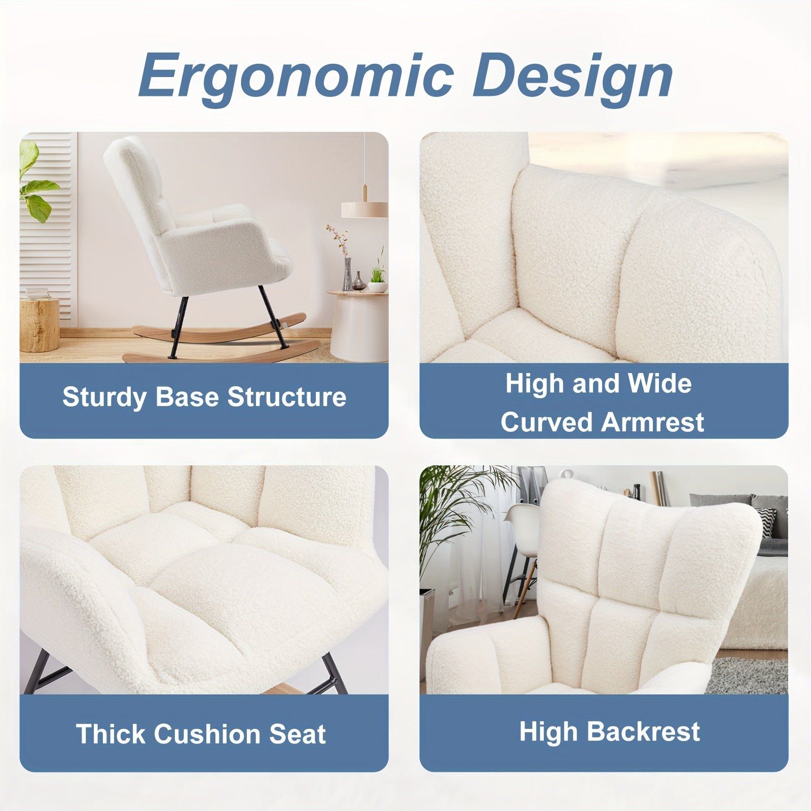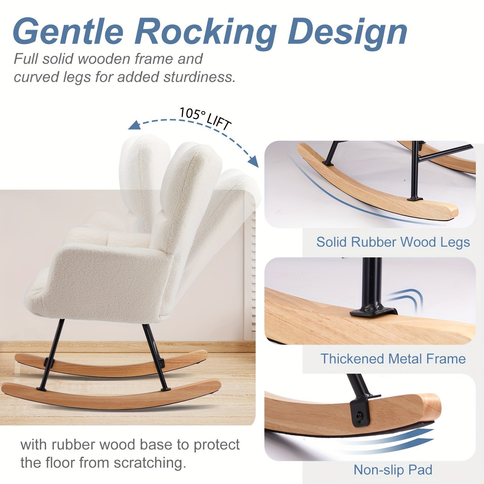🐻 Modern Teddy Fabric Nursery Rocker: Elevate your nursery with our stylish rocking chair featuring teddy fabric upholstery. Super soft and skin-friendly, it’s perfect for any space, from the front porch to the bedroom, living room, or nursery. 🏡👶