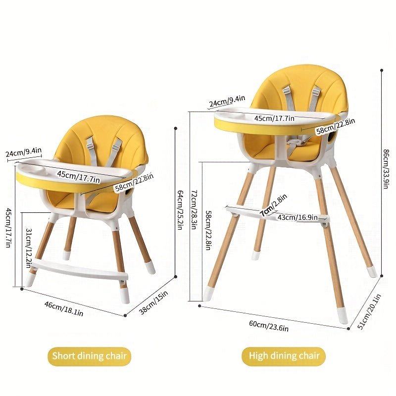 Convertible 3-in-1 High Chair with Adjustable Legs & Tray