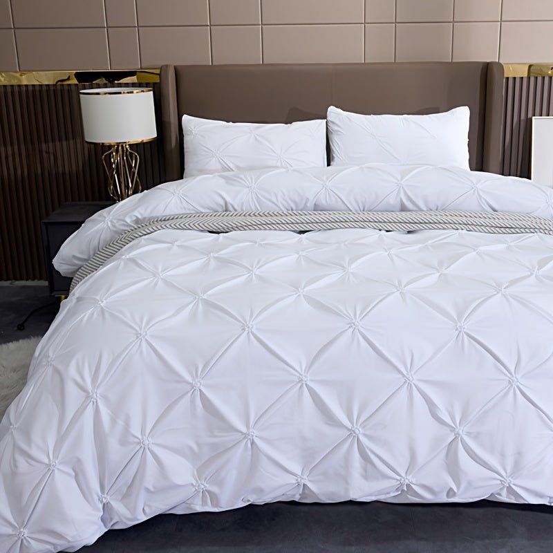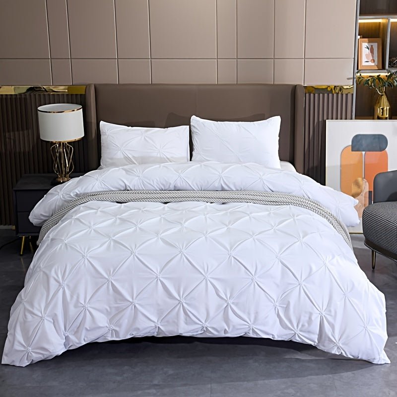White Pinch Pleated Duvet Cover Set – Soft & Stylish