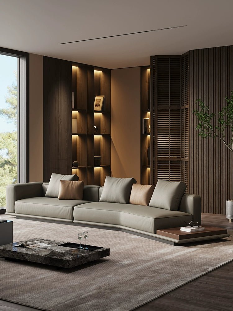Art Chaojiang Modern Leather Sofa for Large Living Rooms
