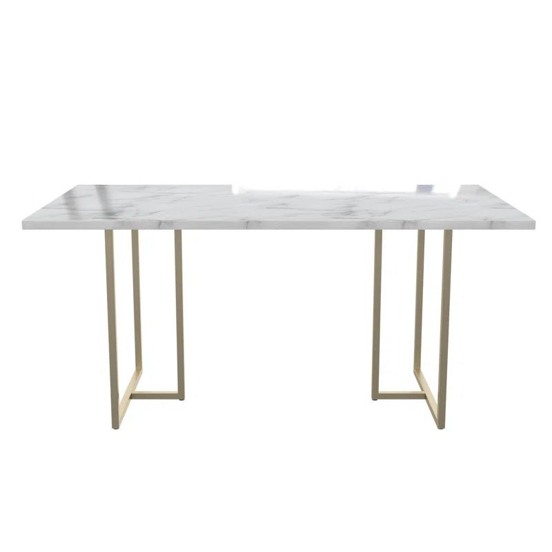 The CosmoLiving Astor Dining Table turns dinner time into a full-on Instagram foodie photoshoot. Crafted with a bold rectangular shape, this fierce piece has a stunning, faux marble top that looks too good to be true. Your kitchen and dining room will get a much-needed glow-up with its symmetrical, strong metal trestle base. Not just for your kitchen, this gorg table will perfect your home office as well. Create a workspace for your computer and desk essentials that’ll have you feeling like a boss while you hustle throughout the day. Designed with a sturdy construction, no matter where you put the Astor Dining Table, it’ll werk its long-lasting magic in your home. Available in a variety of faux marble tabletop and base finishes for any aesthetic.