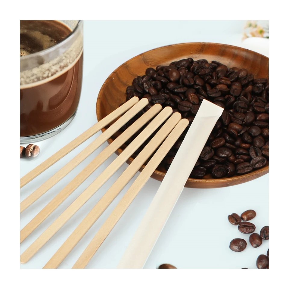 Bamboo Wooden Tea Coffee Sticks Stirrers Eco Friendly Wrapped Drink Stirrers