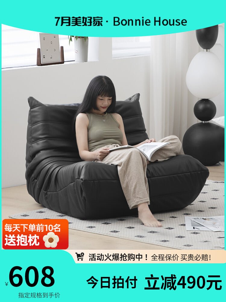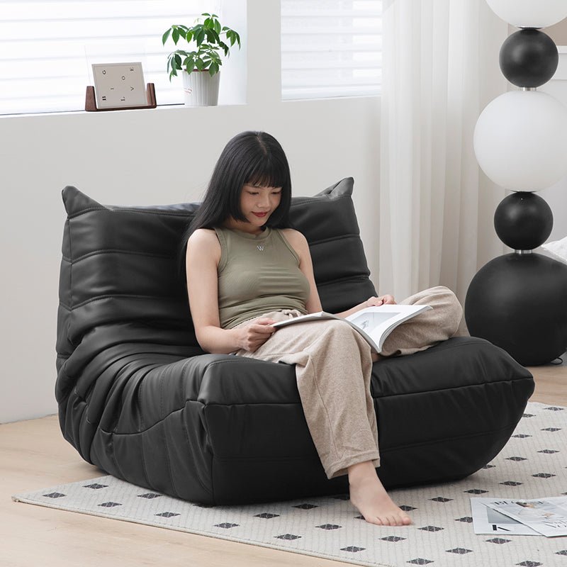 Togo Black Leather Lazy Chair for Small Spaces