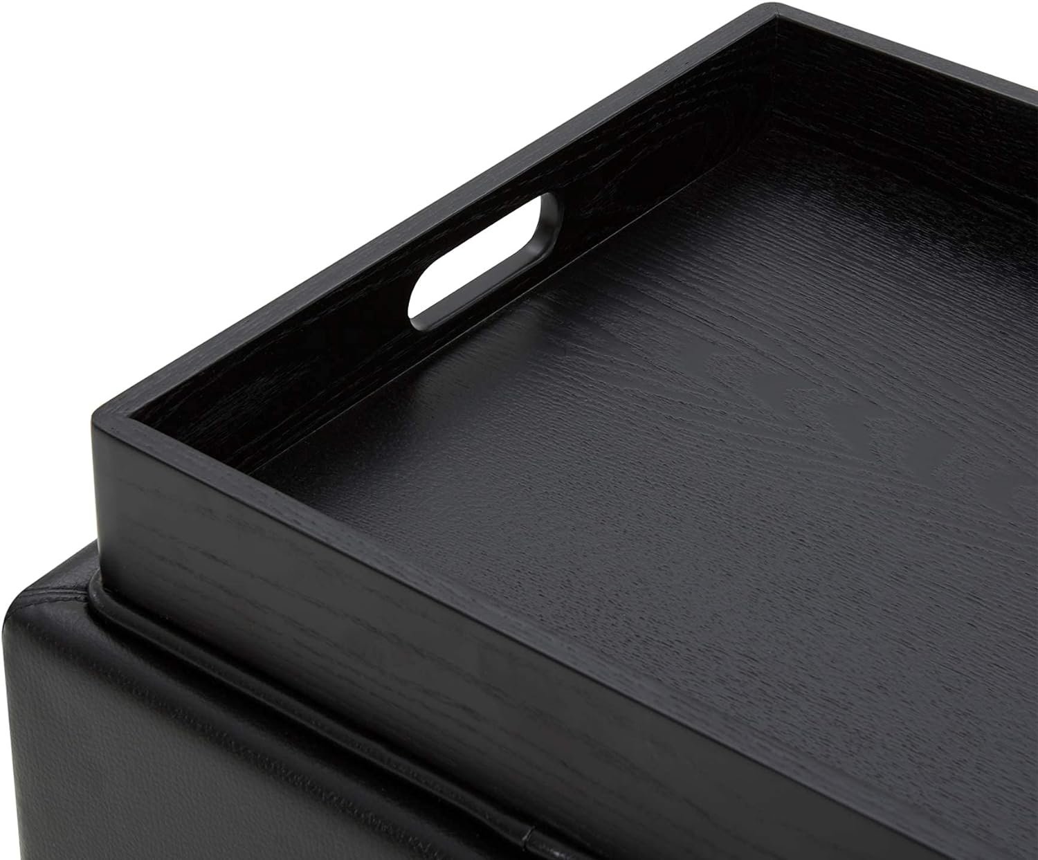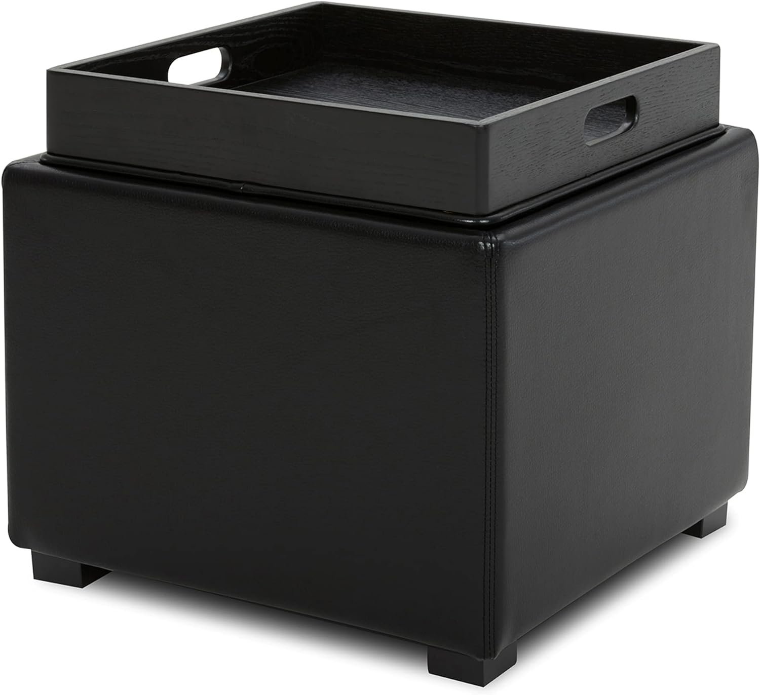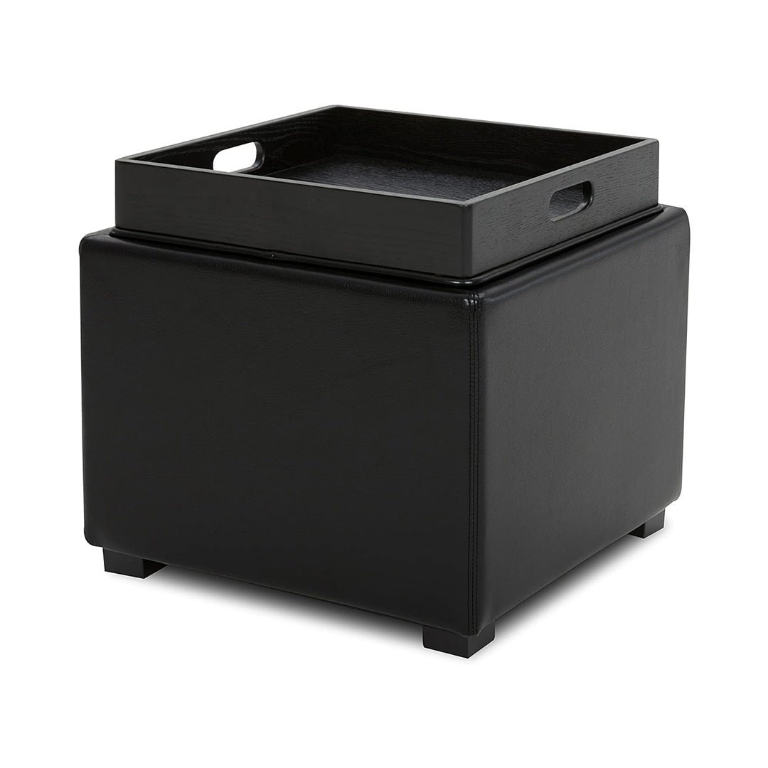 CHITA Black PU Leather Storage Ottoman Cube with Tray