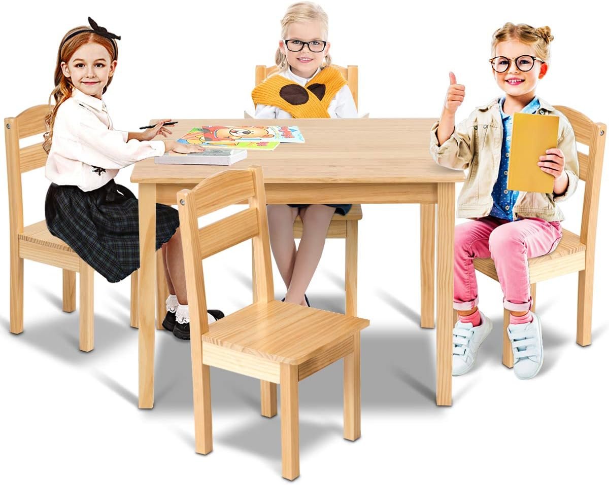 Costzon Kids 5-Piece Wood Table & Chair Set – Natural