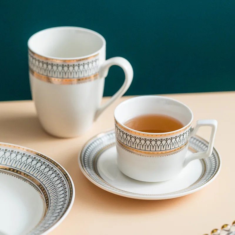 European Luxury Ceramic Coffee Cup Set Bone China with Saucer Nordic Design Wholesale for Home or Hotel Use Stocked and Safe