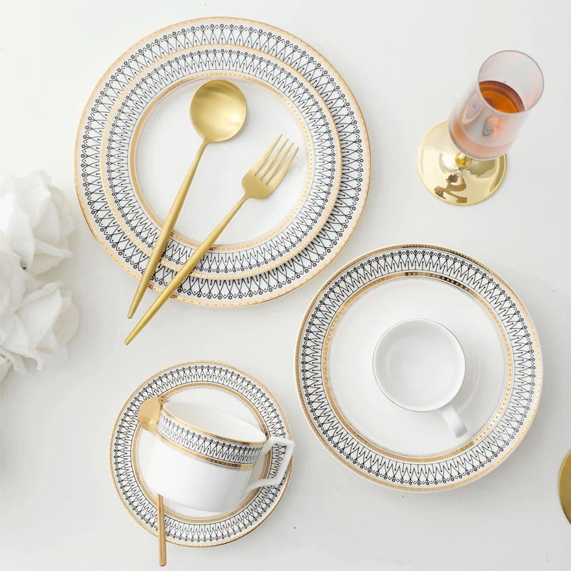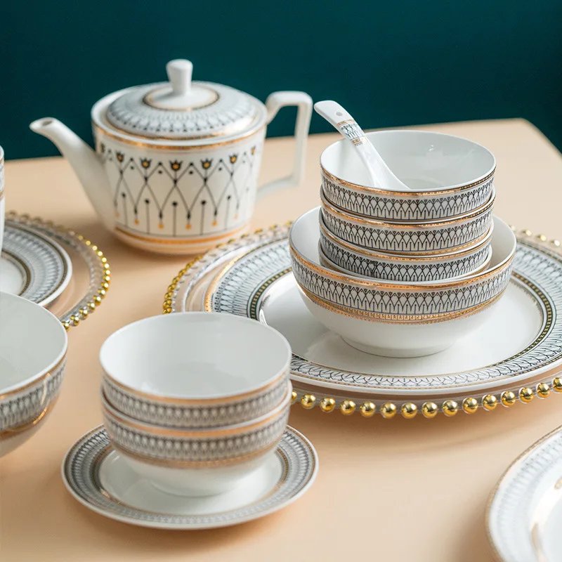 High Grade Good Price Customizable Fine Bone China Dinnerware Dinnerware Sets Luxury Plates and Bowls Sets Dinnerware
