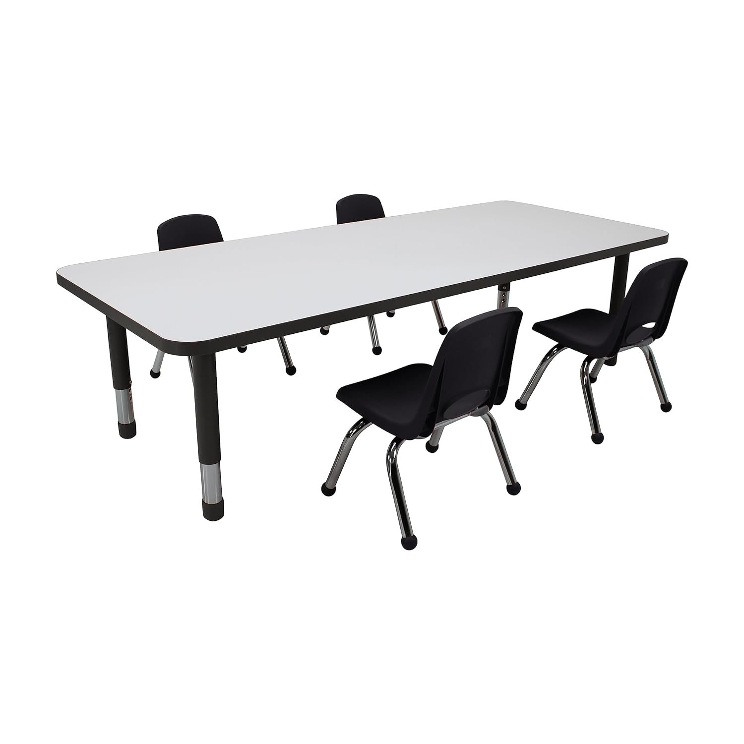 🖊️ Markerboard Top: The laminate tabletop features a durable markerboard surface, allowing kids to express their creativity freely. Whether it’s drawing, writing, or problem-solving, these tables provide an interactive learning experience.