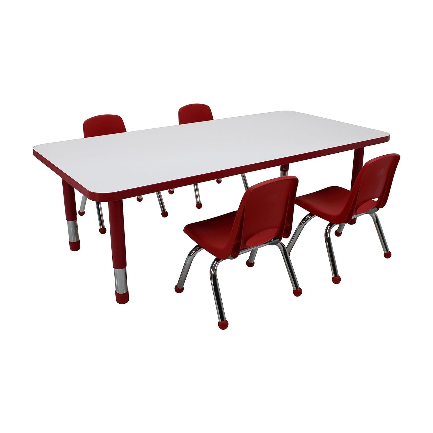 🪑 School Chair Pack: This set includes four durable kids’ chairs designed for comfort and stability. The chairs stack safely up to six high, making storage a breeze while maximizing space efficiency.