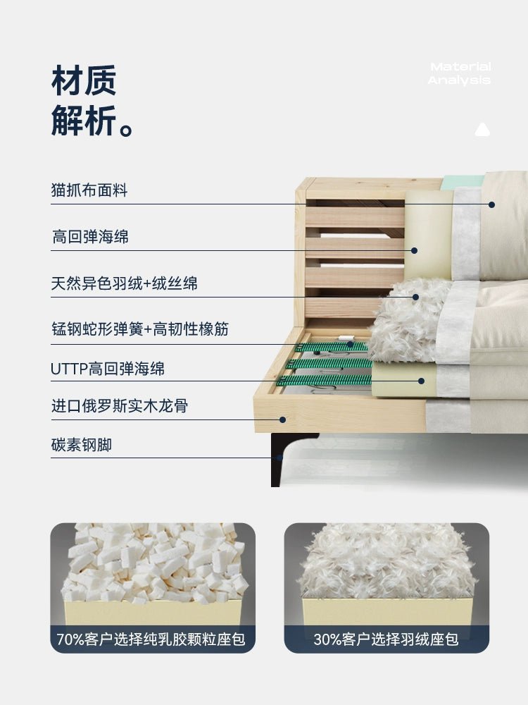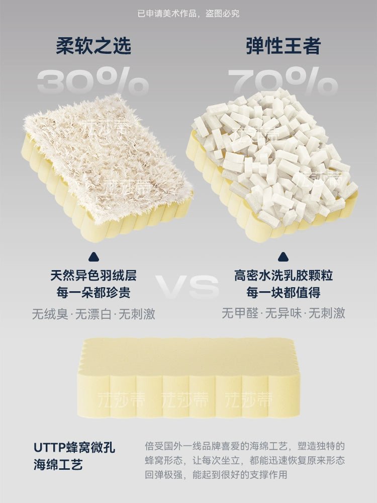 • How many people sit:30% choose down cushions (cat scratching cloth) 70% choose latex particle cushions (cat scratching cloth)