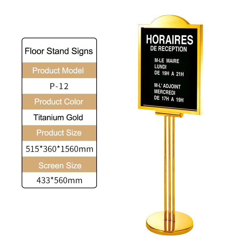 25 reviews for Golden Metal Floor Sign Stand Display Sign Holder Poster Board Hotel Lobby Restaurant A3 Poster Display Stands