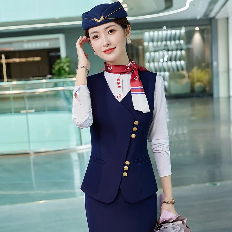 Classic Women Formal Vest Skirt Pants Airline Aviation Uniform Waistcoat Design Stewardess Uniform