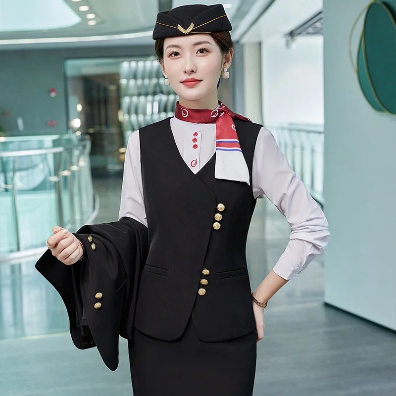 Custom logo Women Waistcoat Vest Formal Aviation Airline Hostess Uniform Fashion Airline Stewardess Uniform