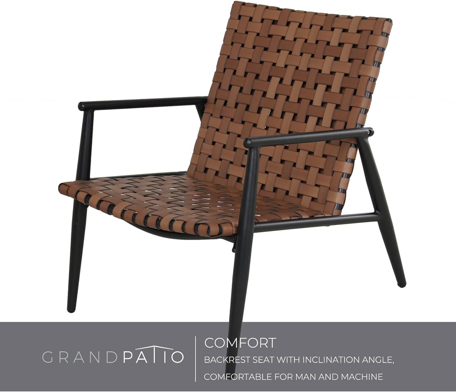 - Handwoven wide faux leather wicker that’s weather-resistant and sturdy.