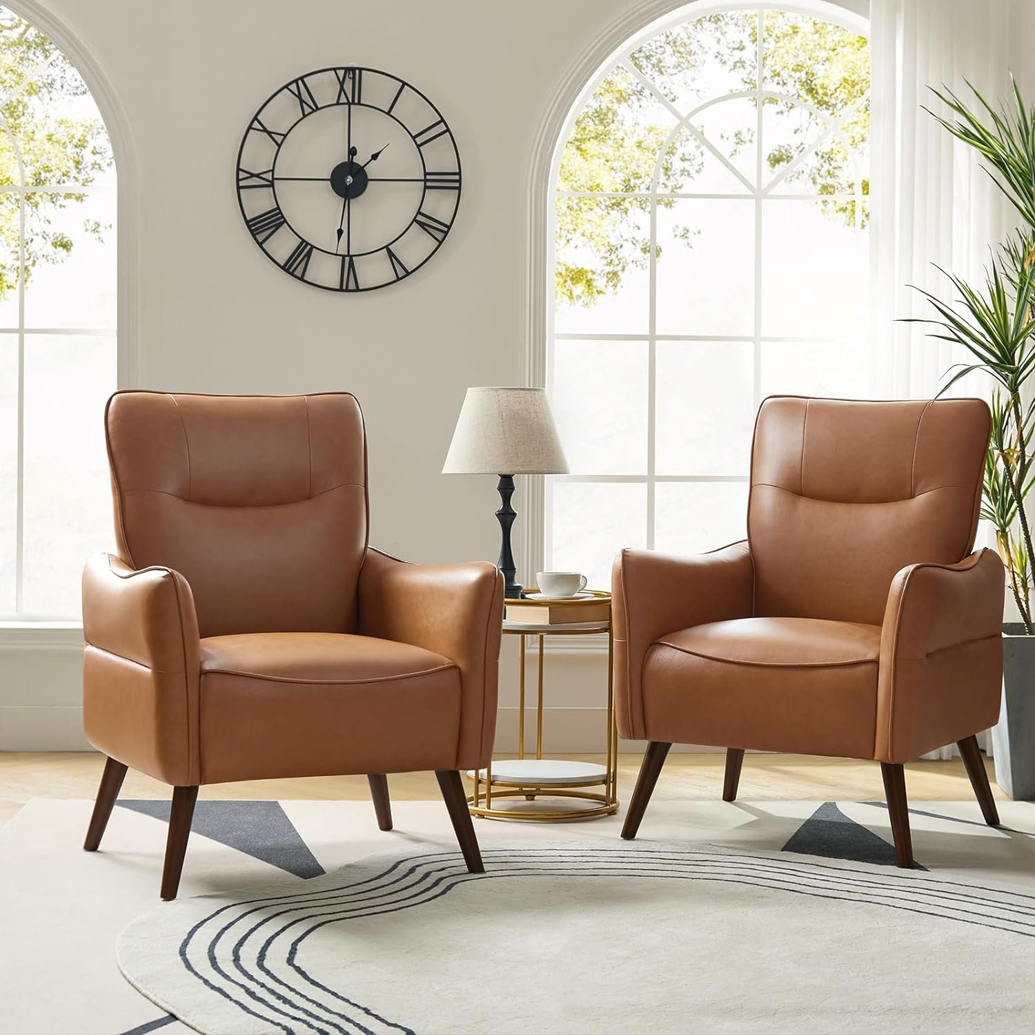 HULALA HOME Modern Faux Leather Accent Chairs Set of 2