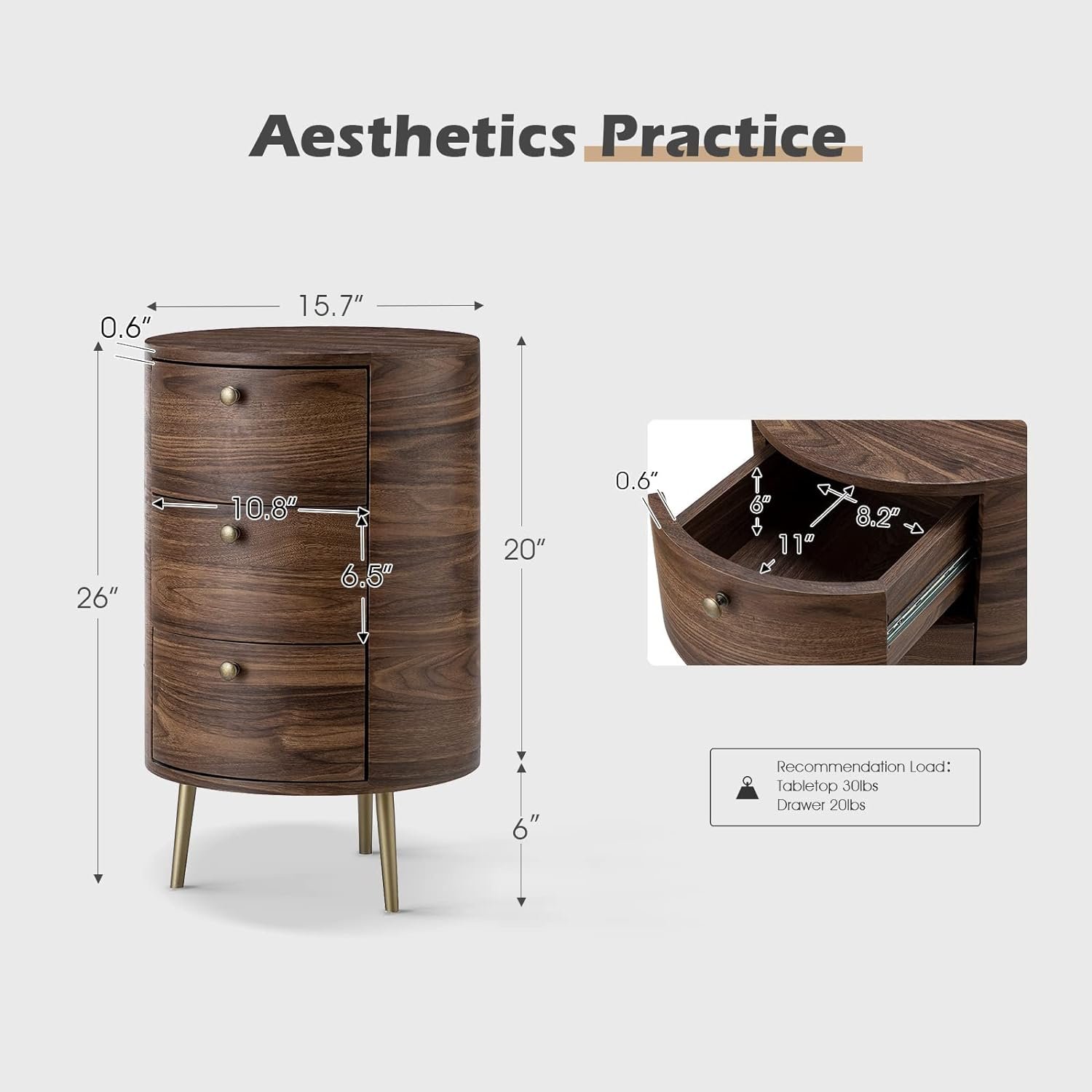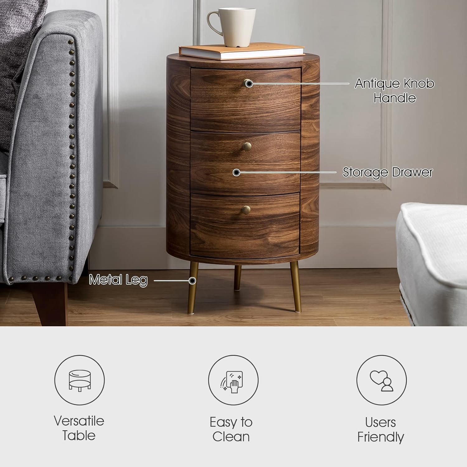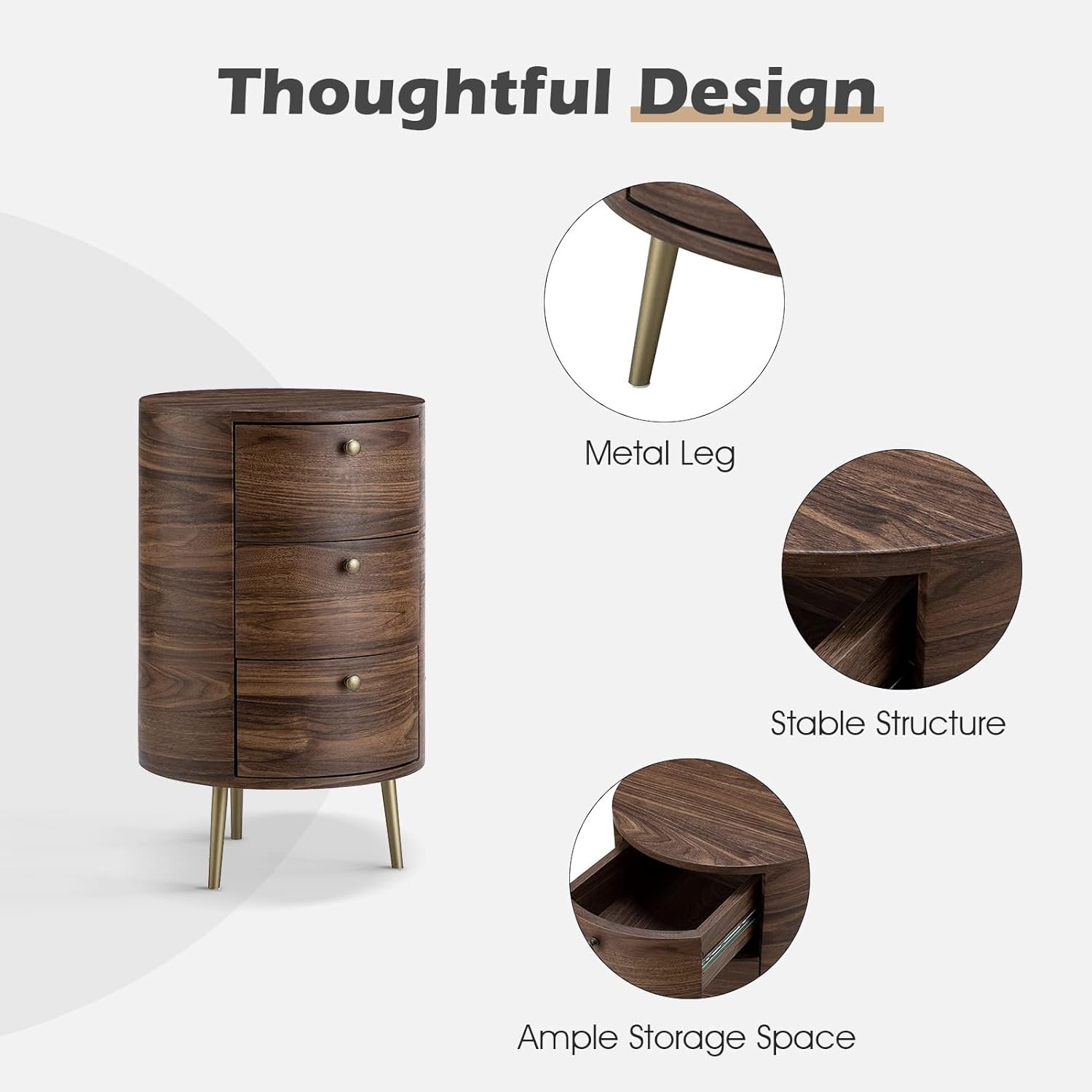 25 reviews for HULALA HOME Mid Century Modern Round End Table with Drawers