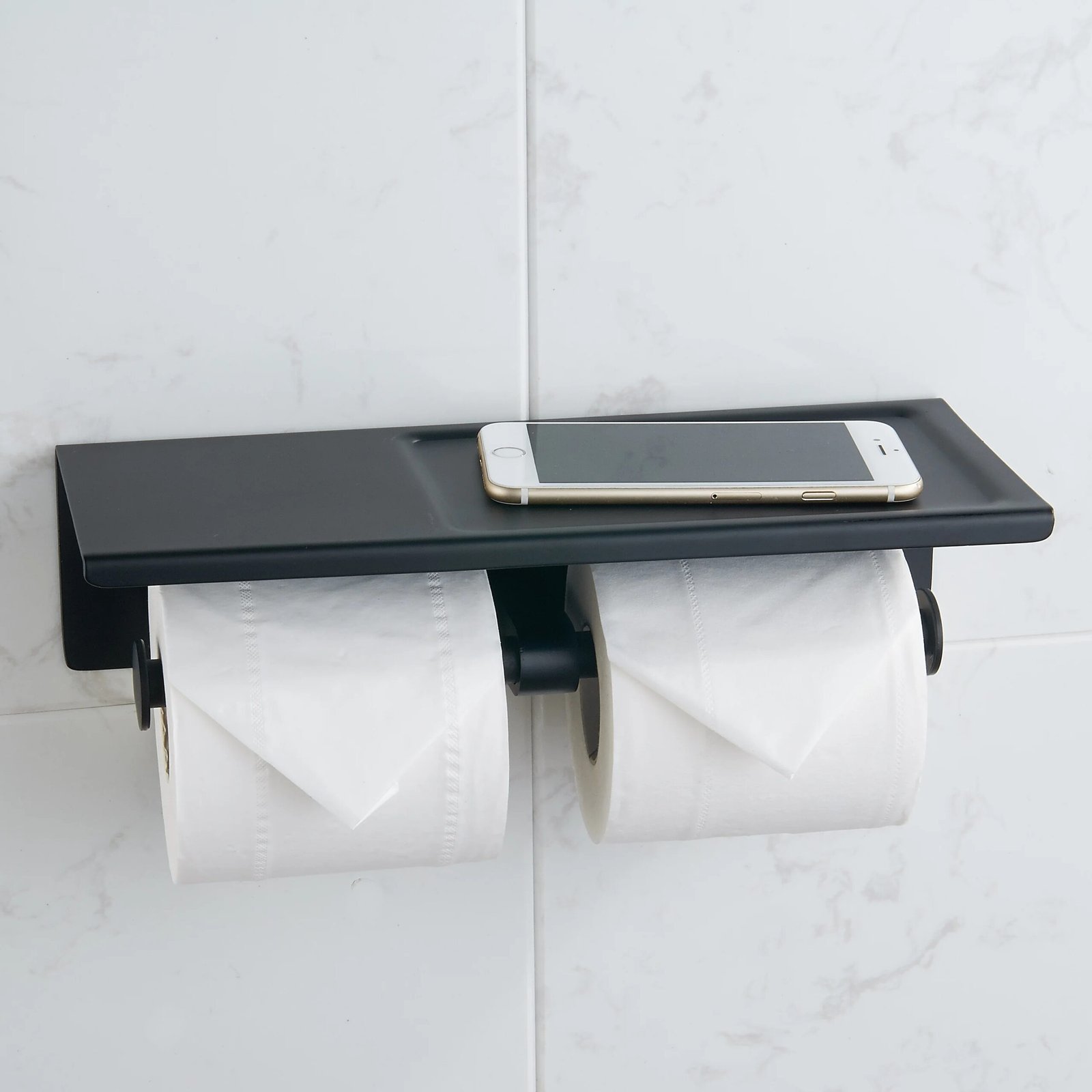 This toilet paper roll holder is a game changer! The phone shelf is super handy, and it looks great in my bathroom. Highly recommend!
