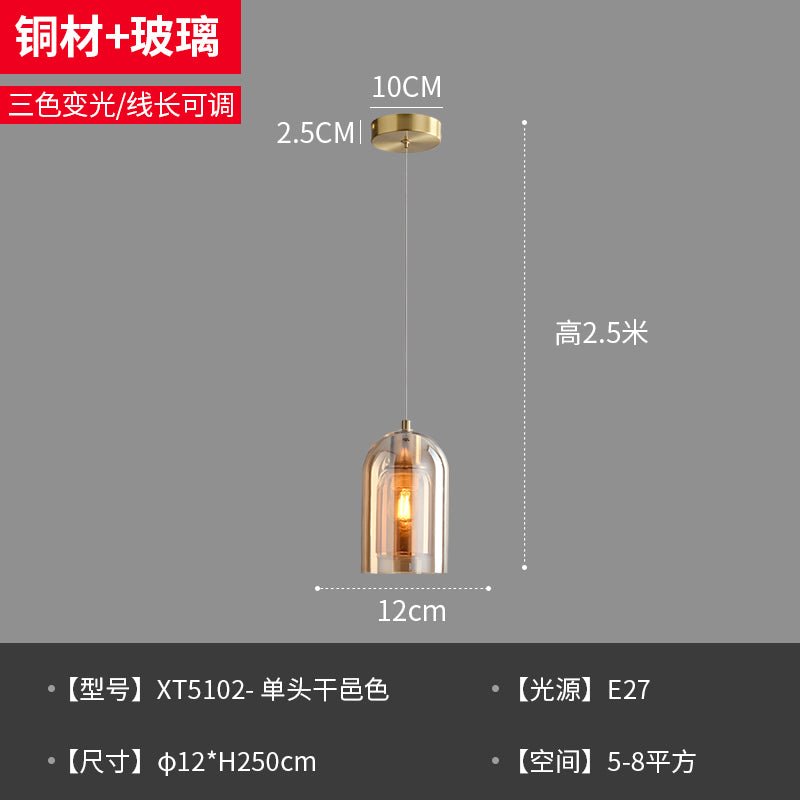 Nordic Copper Glass Chandelier – Modern Bedside Light