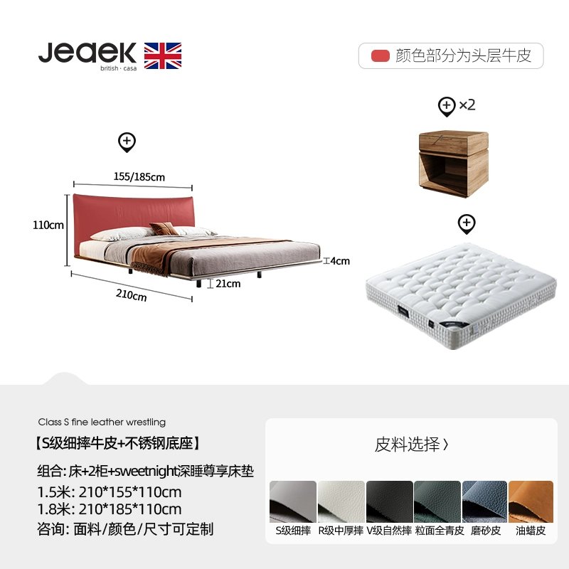[S-grade fine leather + stainless steel base] Wales single bed ,[S-grade fine leather + stainless steel base] bed + 1 cabinet ,[S-grade fine leather + stainless steel base] bed + 2 cabinets ,[S-grade fine leather + stainless steel base] bed + coconut palm spine protection mattress ,[S-grade fine leather + stainless steel base] bed + 1 cabinet + coconut palm spine protection mattress ,[S-grade fine leather + stainless steel base] bed + 2 cabinets + coconut palm spine protection mattress ,[S-grade fine leather + stainless steel base] bed + seven-star imported Tencel double-sided mattress ,[S-grade fine leather + stainless steel base] bed + 1 cabinet + Seven Star imported Tencel double-sided mattress ,[S-grade fine leather + stainless steel base] bed + 2 cabinets + Seven Star imported Tencel double-sided mattress ,[S-grade fine leather + stainless steel base] bed + sweetnight deep sleep exclusive mattress ,[S-grade fine leather + stainless steel base] bed + 1 cabinet + sweetnight deep sleep exclusive mattress ,[S-grade fine leather + stainless steel base] bed + 2 cabinets + sweetnight deep sleep exclusive mattress ,Customizable [color, size, fabric] Consult customer service for free sample delivery |