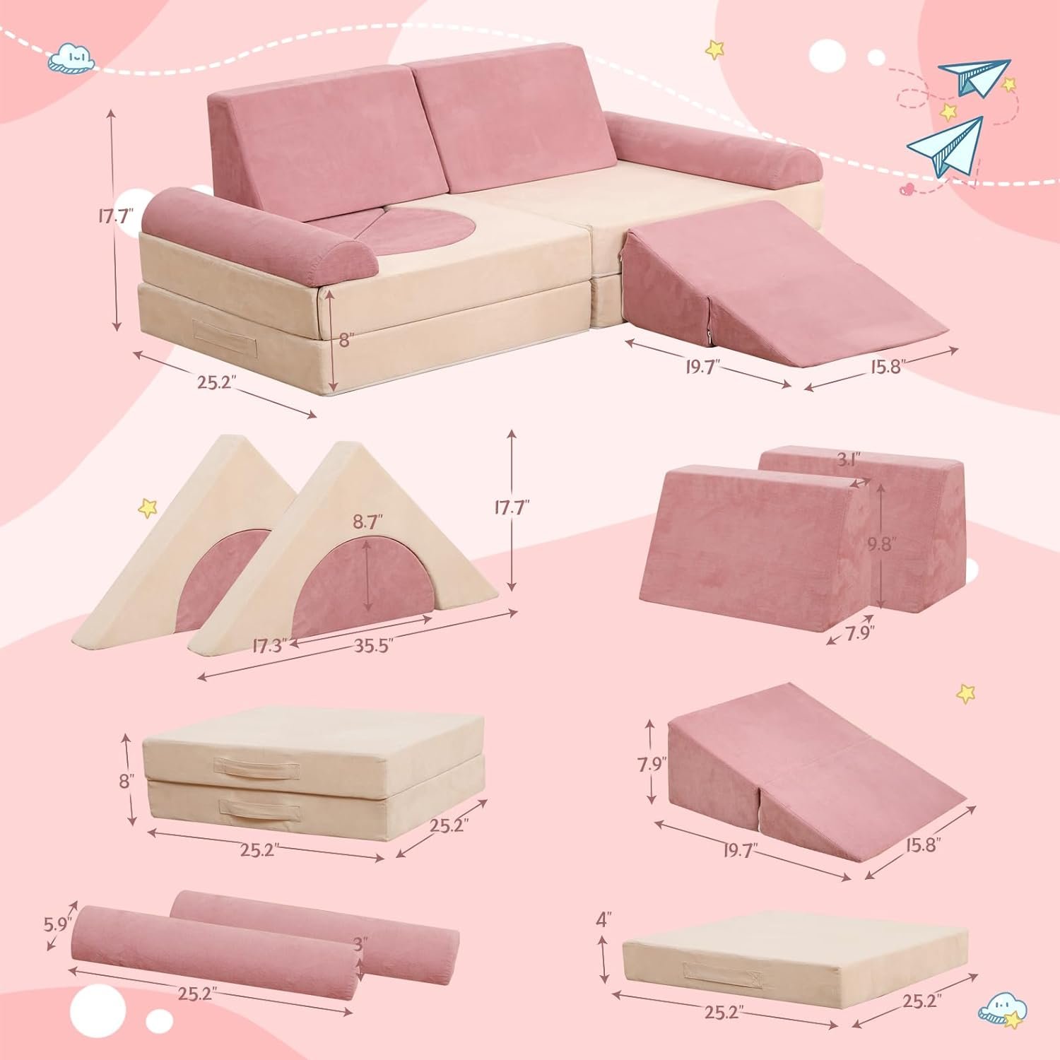 26 reviews for Modular Kids Play Couch – 12PCS Foam Climbing Set