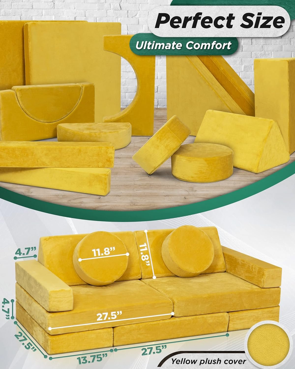 Lunix LX15 Kids Modular Play Couch – Yellow Foam Sofa