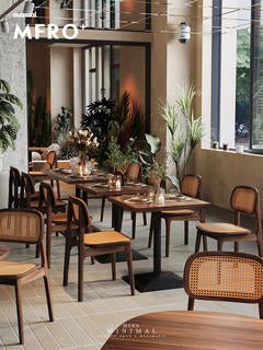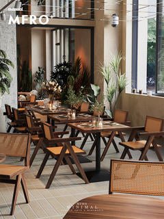 MF Solid Wood Rattan Dining Set for Cafe & Restaurant