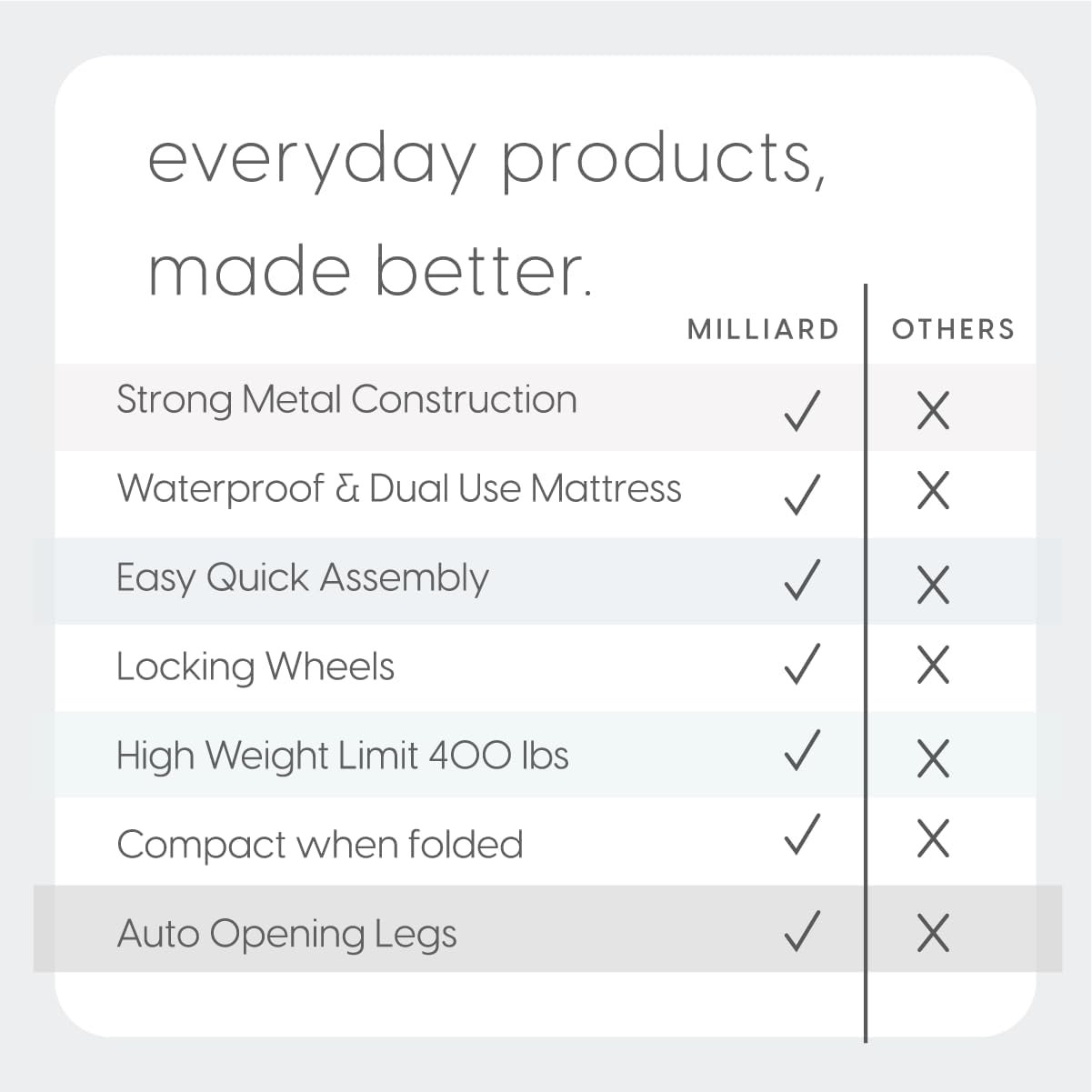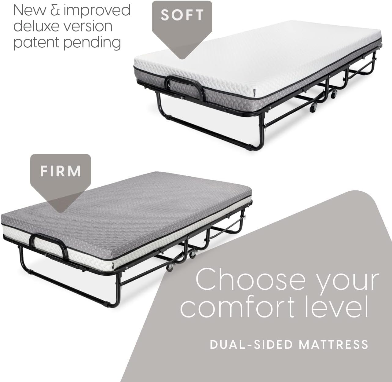 😌 LUXURIOUS COMFORT: Experience unparalleled comfort with our proprietary Milliard Dual-Sided Folding Bed Mattress. Choose your preferred comfort level with the supportive foam base and memory foam layer, providing the luxurious comfort your body craves. Plus, enjoy the convenience of a super soft mattress cover that’s easy to toss into the wash for a quick clean.