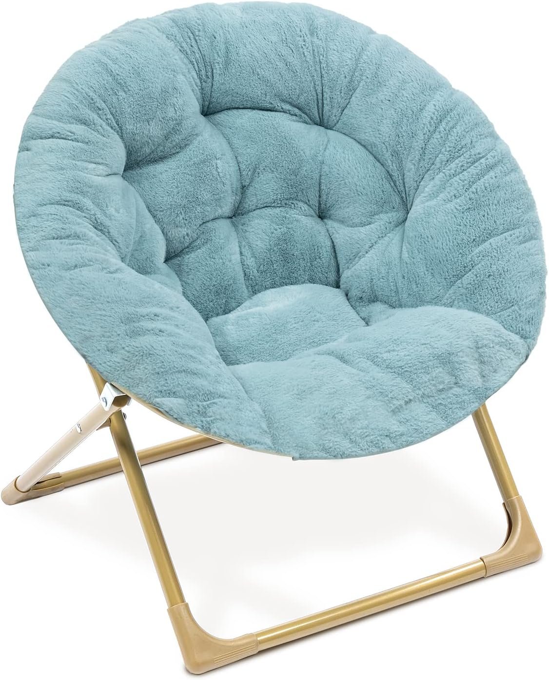 ⚡ Convenient & Versatile: Enjoy your new chair the moment it arrives! It folds for easy storage and transportation, ensuring you can take comfort wherever you go. Featuring faux fur fabric on a sturdy gold metal frame, it measures 23” W x 17” D x 21” H for the perfect blend of style and functionality.