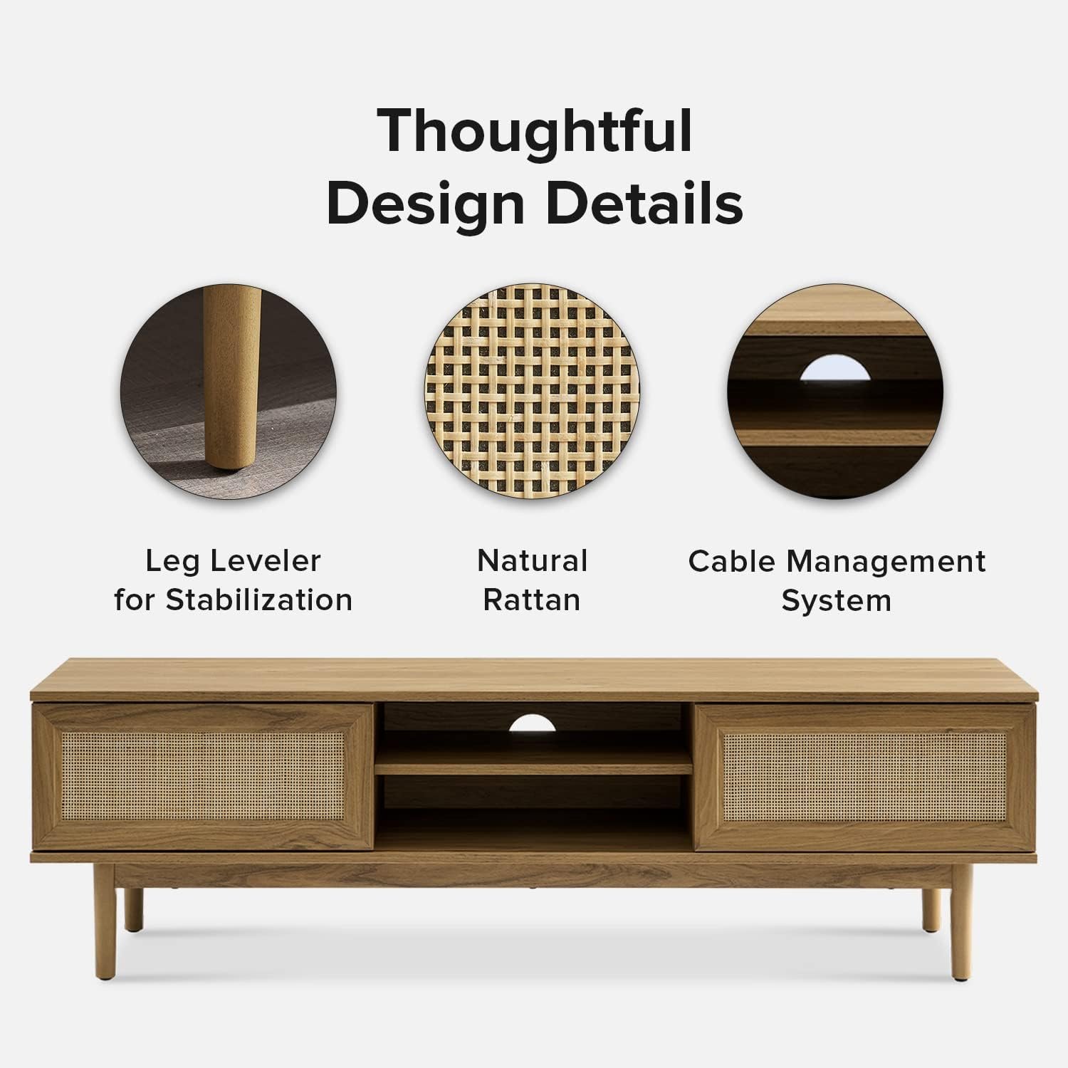 Mopio Haylee 59″ Boho Farmhouse TV Stand with Rattan