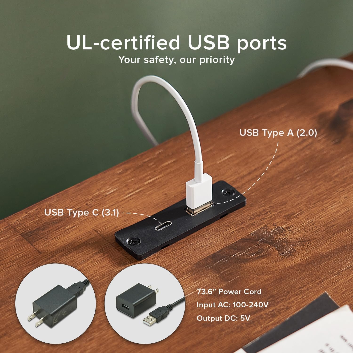 🔌 Recharge with Ease: Featuring UL-certified USB-C (3.1) and USB-A (2.0) ports and a 73.6″ power cord, this nightstand is designed for your convenience and safety.